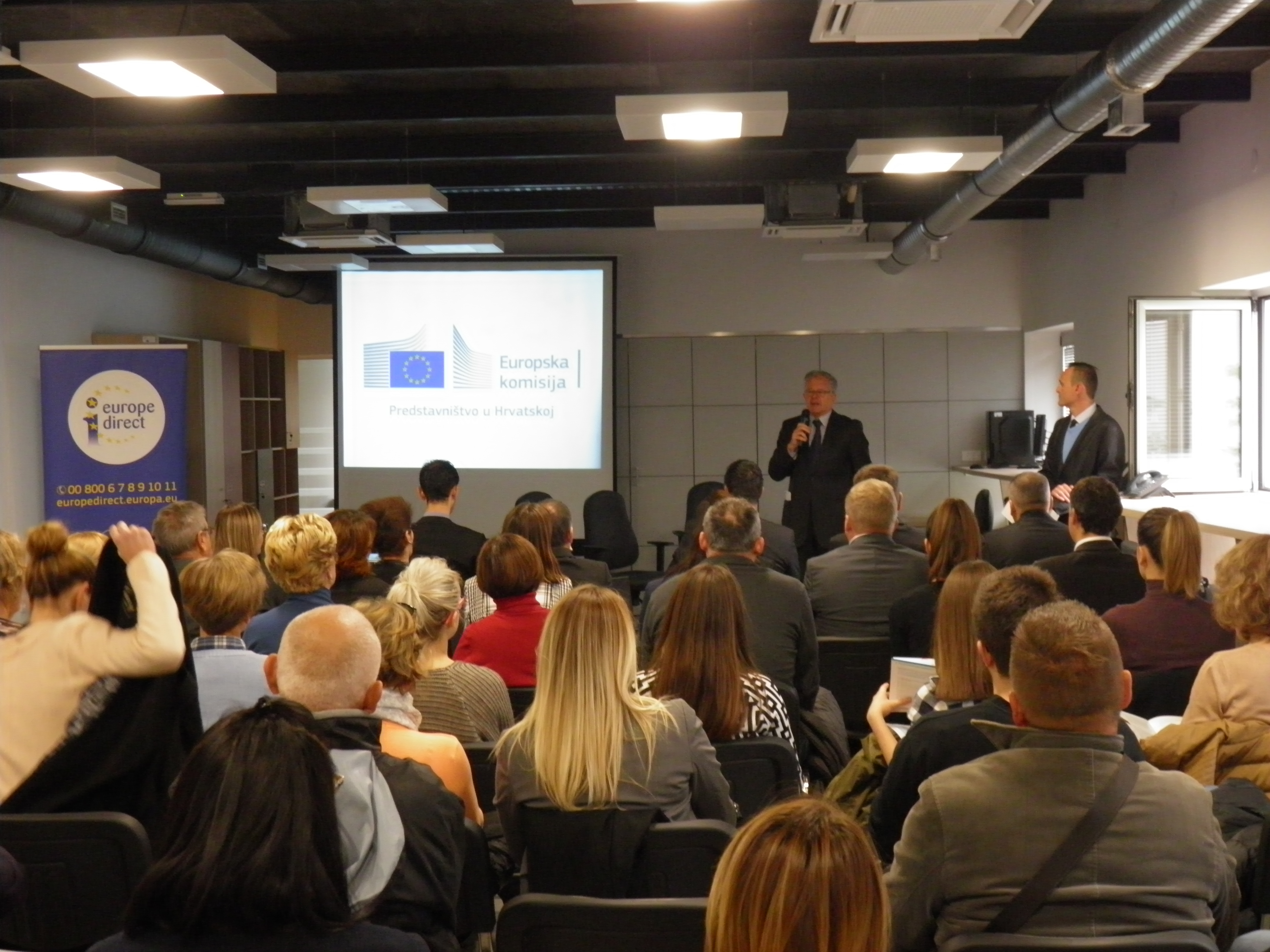 Prisutne su u uvodnom govoru pozdravili gospodin Davor Lonić, pročelnik Upravnog odjela za razvoj i europske procese i gospodin Branko Baričević, voditelj Predstavništva Europske komisije u Hrvatskoj.