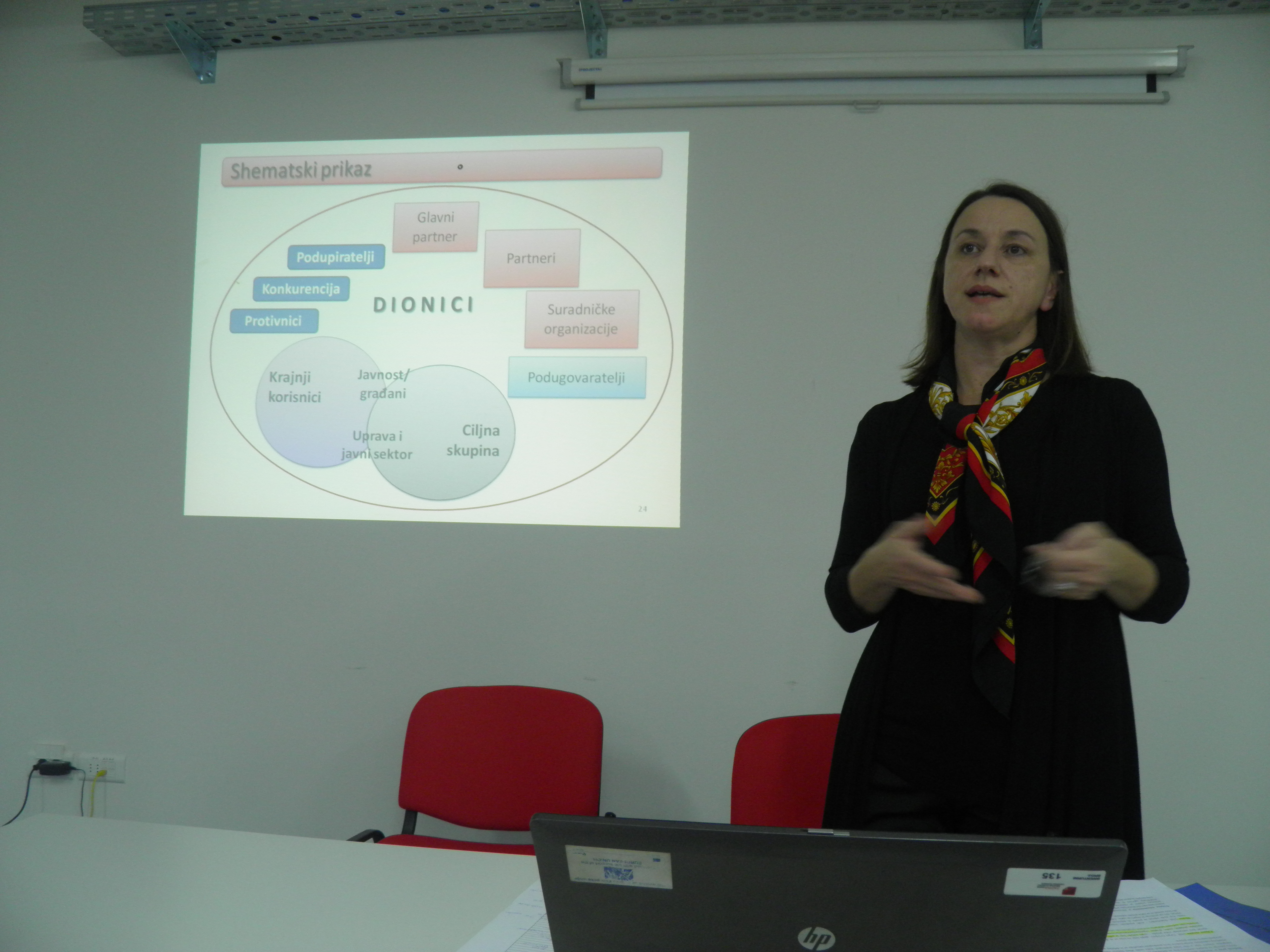 Edukaciju je održala gospođa Renata Marušić, voditeljica Odjela za provedbu EU projekata Agencije za razvoj Zadarske županije ZADRE NOVE. Renata Marušić, po struci diplomirani ekonomist, iza sebe ima desetogodišnje iskustvo koje uključuje osmišljavanje, pripremu i provedbu projekata. Tijekom svog dugogodišnjeg iskustva surađivala je s javnim, privatnim i civilnim sektorom, ali i radila na izgradnji partnerstva na nacionalnoj i međunarodnoj razini.
