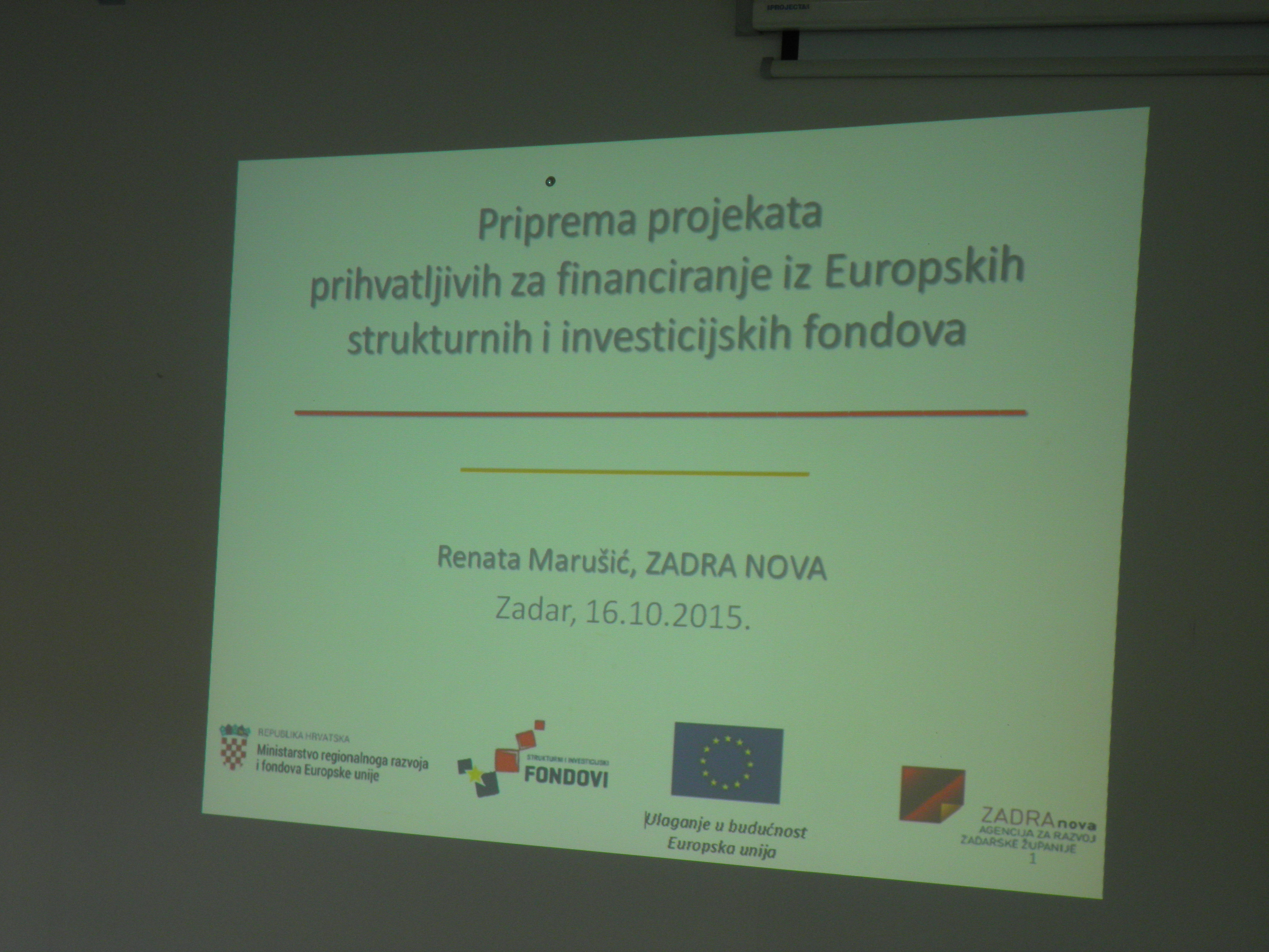 U Agenciji za razvoj Zadarske županije ZADRI NOVOJ od 14. do 16. listopada održana je edukacija na temu: ”Priprema projekata prihvatljivih za financiranje iz Europskih strukturnih i investicijskih fondova”.