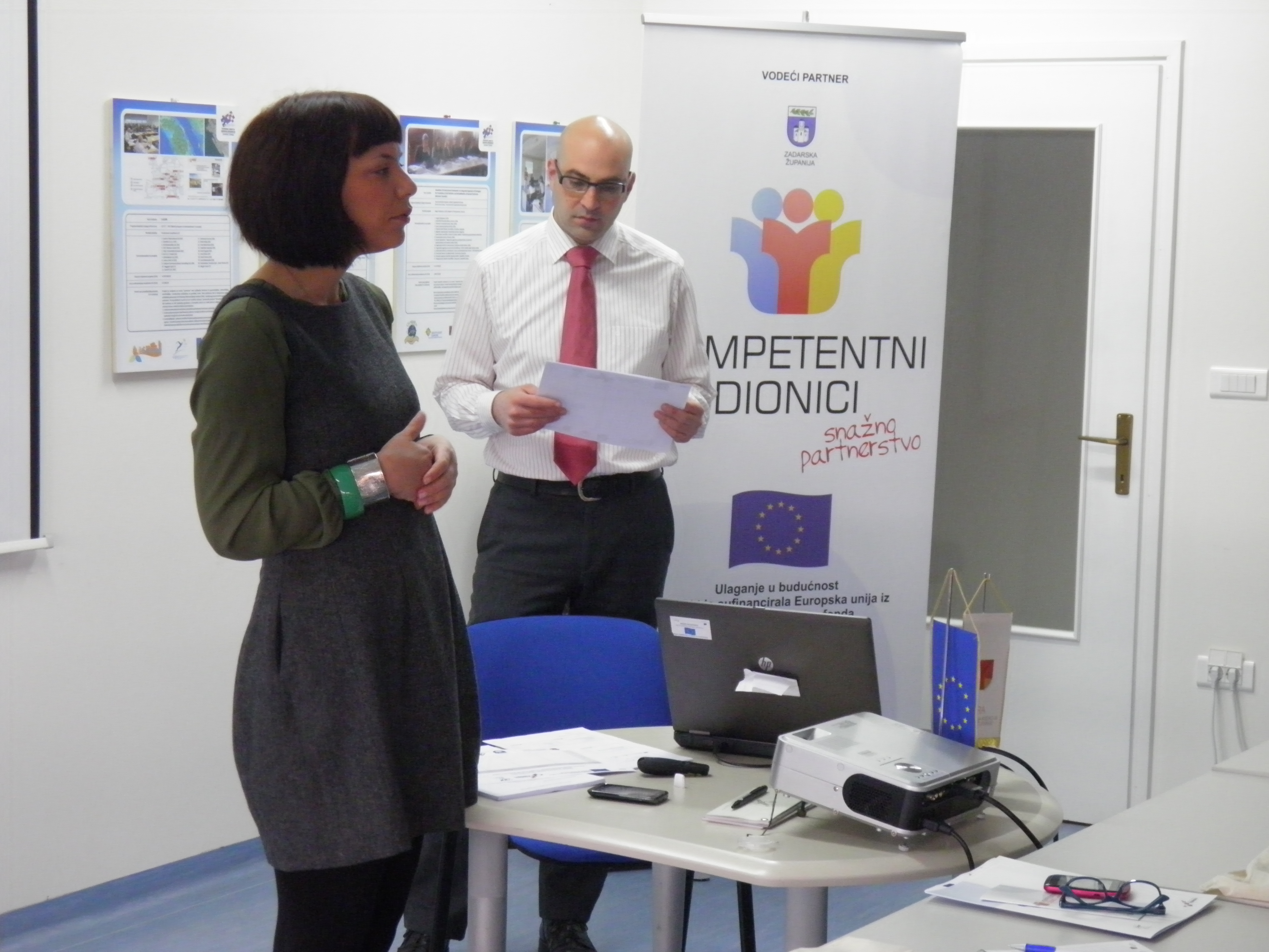 Provedba projekta „Kompetentni dionici – snažno partnerstvo“ počela je 1. listopada 2013. godine. Ovaj 20 mjeseci dug projekt provodi Zadarska županija uz lokalne partnere HZZ – Područni ured Zadar i Razvojnu agenciju Zadarske županije ZADRA-u te uz suradnike Hrvatsku gospodarsku komoru – Županijsku komoru Zadar i Obrtničku komoru Zadarske županije. Ukupna vrijednost projekta iznosi 42.347,39 eura, od čega iznos od 29.677,00 eura sufinancira Europska unija iz Europskog socijalnog fonda.