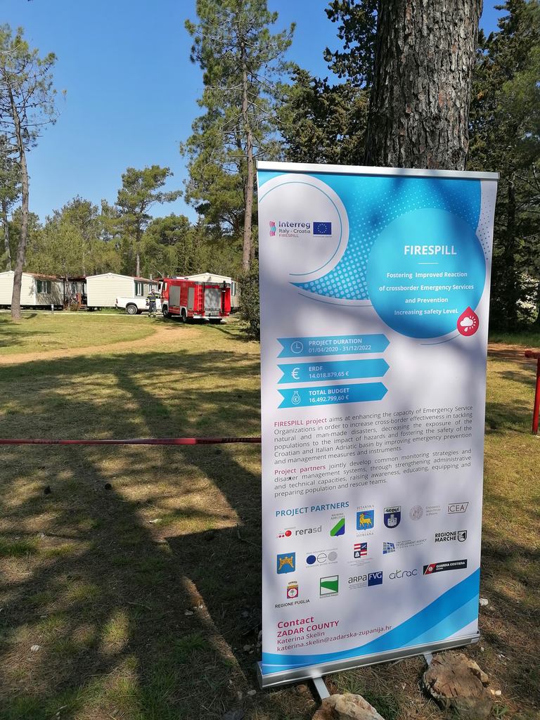 Zadarska županija u sklopu provedbe projekta FIRESPILL - Fostering improved reaction of crossborder emergency services and prevention increasing safety level organizirala je 10. svibnja 2022. godine izvođenje pokazno terenske vježbe gašenja požara „Evakuacija turista i gašenje požara u Zaton Holiday Resortu“. Vježbu je pratio i zamjenik župana Zadarske županije Šime Vicković.