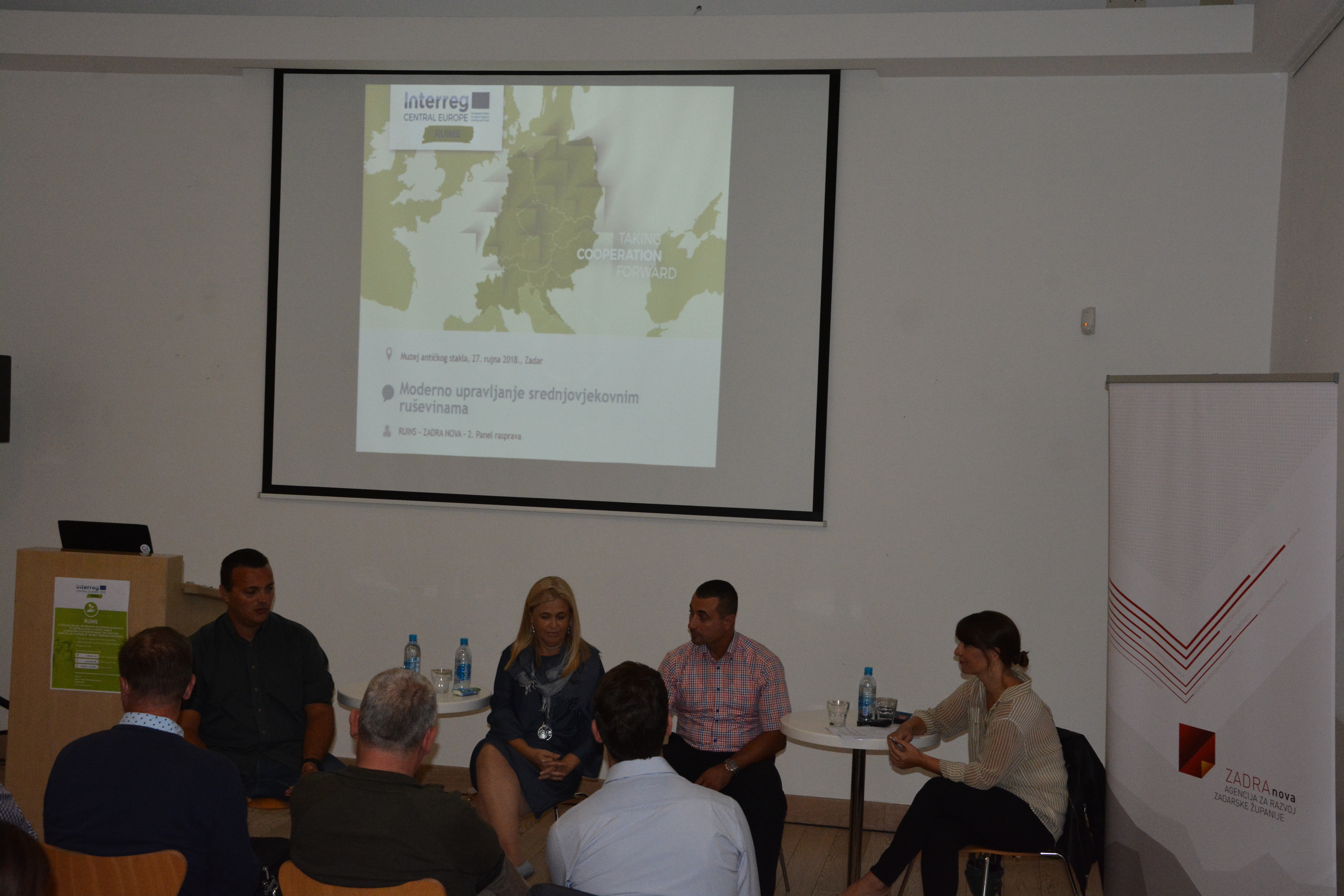 Agencija za razvoj Zadarske županije ZADRA NOVA i Grad Zadar projektni su partneri u međunarodnom projektu „RUINS – Sustainable re-use, preservation and modern management of historical ruins in Central Europe – elaboration of integrated model and guidelines based on the synthesis of the best European experiences (Održiva prenamjena, očuvanje i moderno upravljanje povijesnim ruševinama u Središnjoj Europi – izrada integriranog modela i smjernica prema najboljim primjerima europske prakse)“, sufinanciranog iz Interreg Programa Središnja Europa 2014.–2020. Osim zaštite i kulturne valorizacije crkvica svete Stošije na Puntamiki, projektne aktivnosti obuhvaćaju i tri panel rasprave. Druga u nizu, na temu modernog upravljanja srednjovjekovnim ruševinama, održana je u petak, 27. rujna 2018. godine u Multimedijalnoj dvorani Muzeja antičkog stakla u Zadru. U zanimljivoj i dinamičnoj raspravi sudjelovali su Marko Meštrov, ravnatelj Agencije Han Vrana te stručnjaci s Odjela za turizam i komunikacijske znanosti Sveučilišta u Zadru izv. prof. dr. sc. Božena Krce Miočić i dr. sc. Tomislav Klarin.