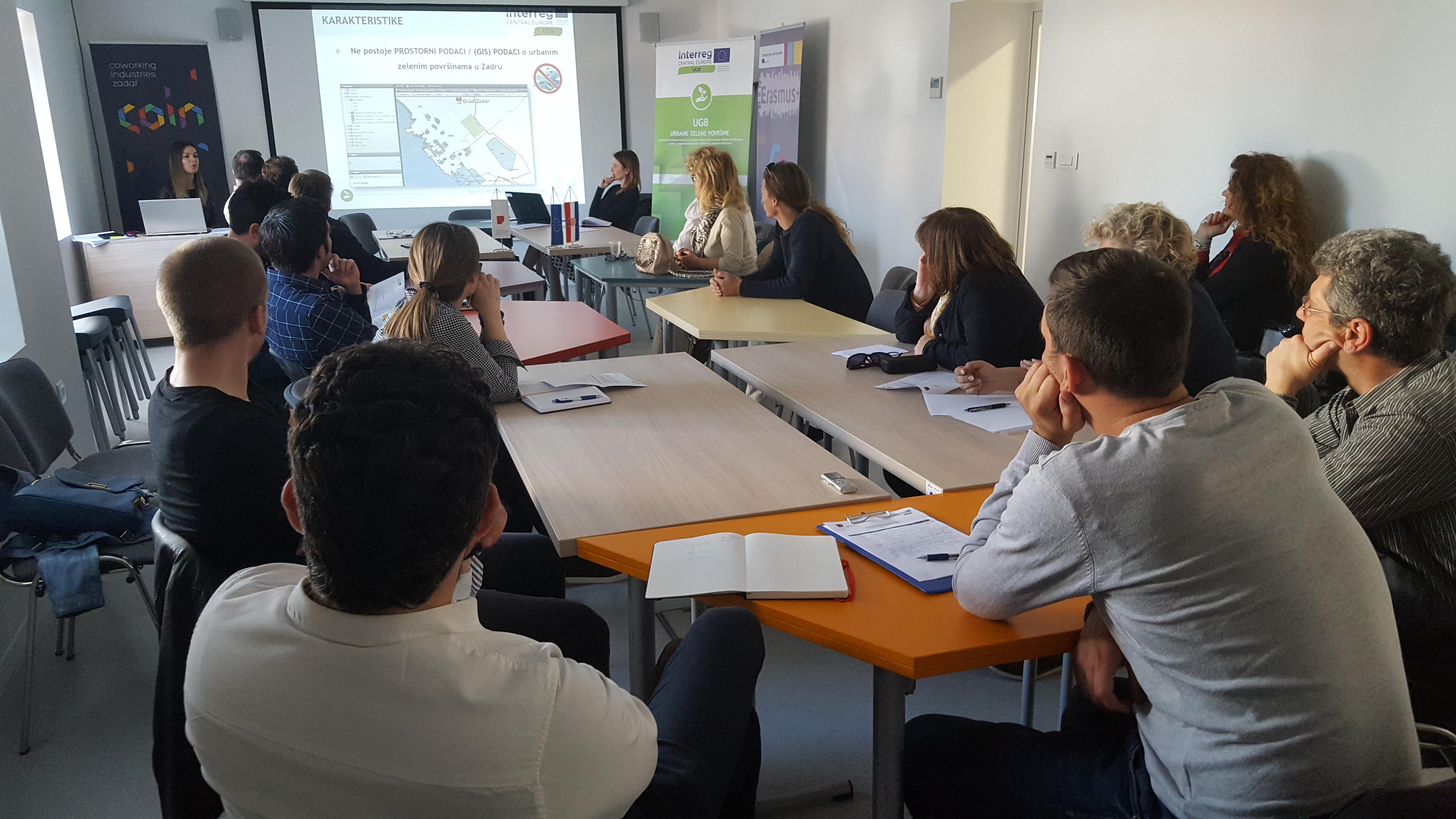Sastanak je održan 10. travnja u Coin coworking prostoru u Zadru i okupio je ključne ljude iz javnog i privatnog sektora upravljanja i brige za zelene površine. Tako su na sastanku sudjelovali predstavnici udruga, znanstvene zajednice, lokalnih i regionalnih vlasti te komunalnih poduzeća. Sastanak je predvodila voditeljica projekta Urban Green Belts, Marica Babić.