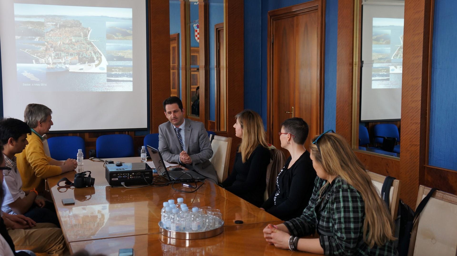 Tom prigodom pozdravio ih je zamjenik gradonačelnika Grada Zadra Ivica Vlakić, nakon čega je Ana Bajlo, voditeljica Odsjeka za energetsku učinkovitost iz Upravnog odjela za prostorno uređenje i graditeljstvo prikazala opsežan portfelj projekata i aktivnosti Grada Zadra na području implementacije projekata obnovljivih izvora energije i energetske učinkovitosti. Ive Surić, stručni suradnik za energetiku u Agenciji za razvoj Zadarske županije ZADRA NOVA-e, predstavio je projekte ZADRA NOVA-e iz područja energetske učinkovitosti i obnovljivih izvora energije kao što su: REPUBLIC med (REtrofitting PUBLic spaces in Inteligent MEDiterranean Cities), BLUENE med (BLUe ENErgy for the Mediterraneani) i CB-GREEN (Cross-Border – Green, Renewable & Energy Efficiency Network). Nakon prezentiranih projekata studenti su posjetili instalaciju Pozdrav Suncu i Morske orgulje koje im je predstavio arhitekt Ivan Kujundžić, suradnik autora nagrađenih zadarskih atrakcija Nikole Bašića iz tvrtke MARINAPROJEKT d.o.o..