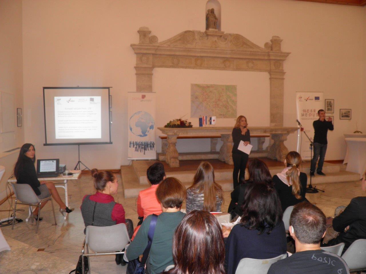 U utorak, 20. listopada 2015. godine s početkom u 18:00 sati održao se okrugli stol na temu “Prava osoba s oštećenjem sluha” u prostoru Gradske lože, na Narodnom trgu u Zadru. Događaj se održao u organizaciji Zadarske županije i Javne ustanove Agencije za razvoj Zadarske županije ZADRE NOVE, a u svrhu provedbe EU projekta “Hear me out – podizanje svijesti i stvaranje mogućnosti za zapošljavanje osoba s oštećenim sluhom”. Projekt “Hear me out” rezultat je uspješne suradnje projektnih partnera Agencije za razvoj Zadarske županije ZADRE NOVE (nositelja projekta), Zadarske županije, Zavoda za javno zdravstvo Zadar, Udruge osoba oštećena sluha Zadar te suradnika na projektu Volonterskog centra Zadar i Hrvatskog zavoda za zapošljavanje – Područnog ureda Zadar.