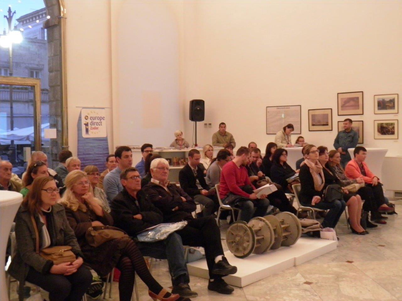 Okrugli stol bio je namijenjen osobama oštećena sluha i članovima njihovih obitelji, potpornim institucijama i svim relevantnim dionicima iz područja socijalne skrbi i tržišta rada. Cilj okruglog stola bio je održati konstruktivnu raspravu o položaju osoba oštećena sluha na tržištu rada i prijedlozima za stvaranje mogućnosti za njihovo zapošljavanje. Na okruglom stolu sudjelovali su predavači: Ana Dušević, Savjetnica za provedbu EU projekata iz Agencije za razvoj Zadarske županije ZADRE NOVE, Nikolina Miočić, Pomoćnica pročelnika upravnog odjela za razvoj i europske procese Zadrarske županije, dr.sc. Višnja Perin i Ana Trošelj iz Hrvatskog zavoda za zapošljavanje – Područnog ureda Zadar. Događaj je okupio više od 50 predstavnika ciljne skupine i krajnjih korisnika projekta.