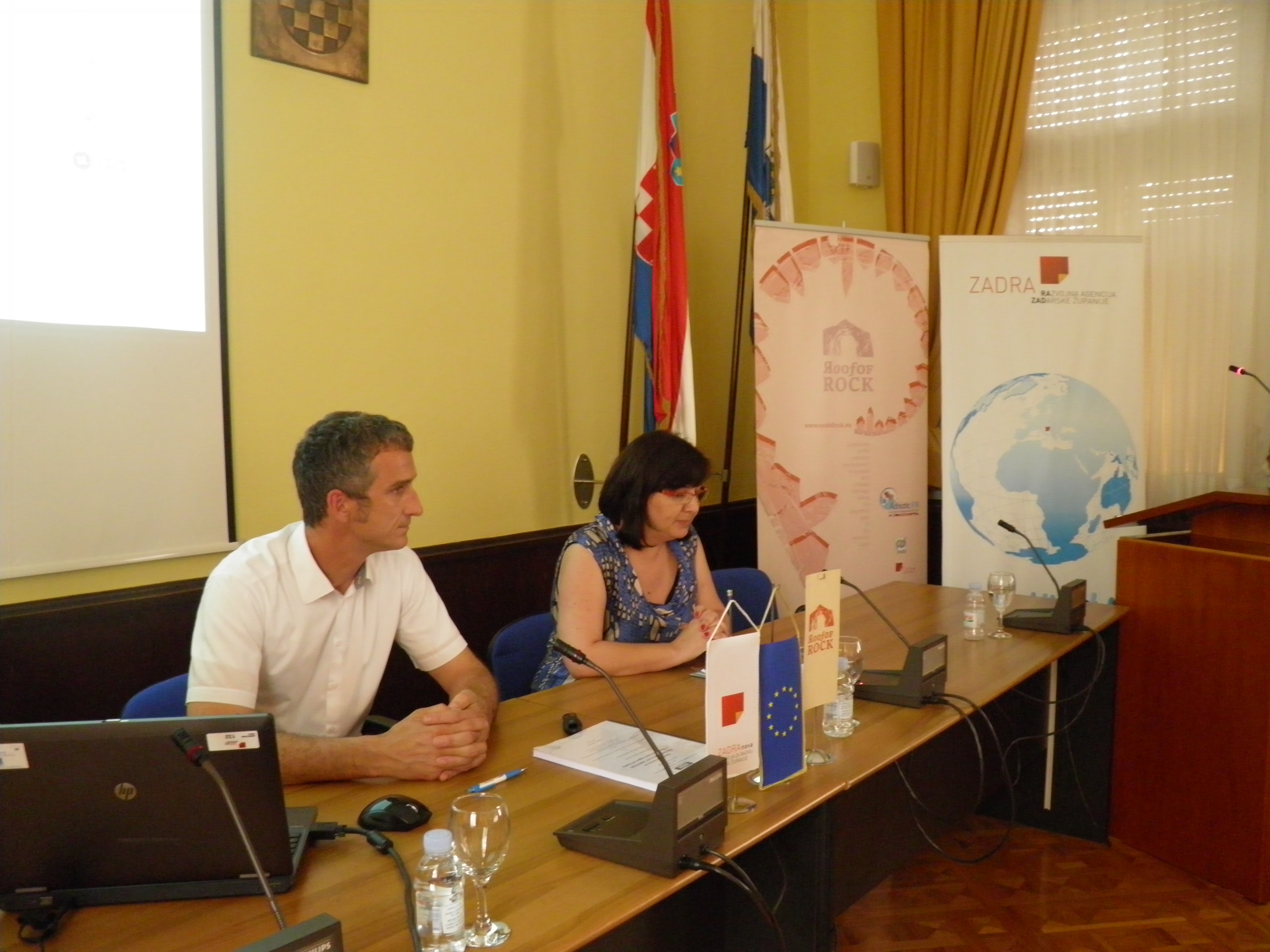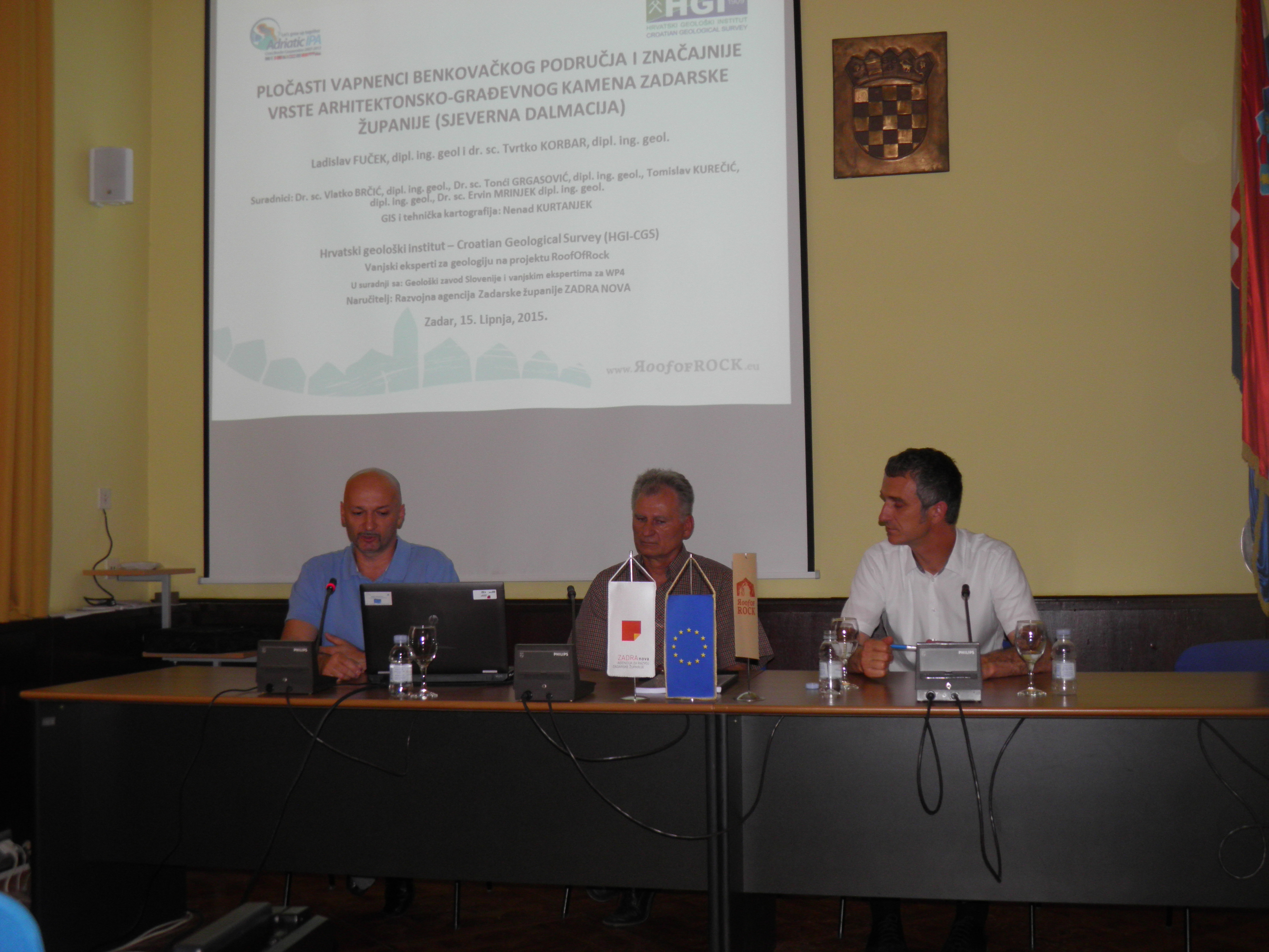 Agencija za razvoj Zadarske županije ZADRA NOVA organizirala je u okviru projekta “Roof of Rock” u Domu Županije prezentaciju rezultata detaljnih geoloških istraživanja provedenih na području Zadarske županije. Ovom prilikom predstavljene su i nove geološke karte raznih litotipova pločastih vapnenaca (Benkovačkog kamena) i arhitektonsko-građevnog (blokovskog) kamena vapnenca korištenog za izgradnju odabranih pokaznih (show-case) objekata na području Zadarske županije.