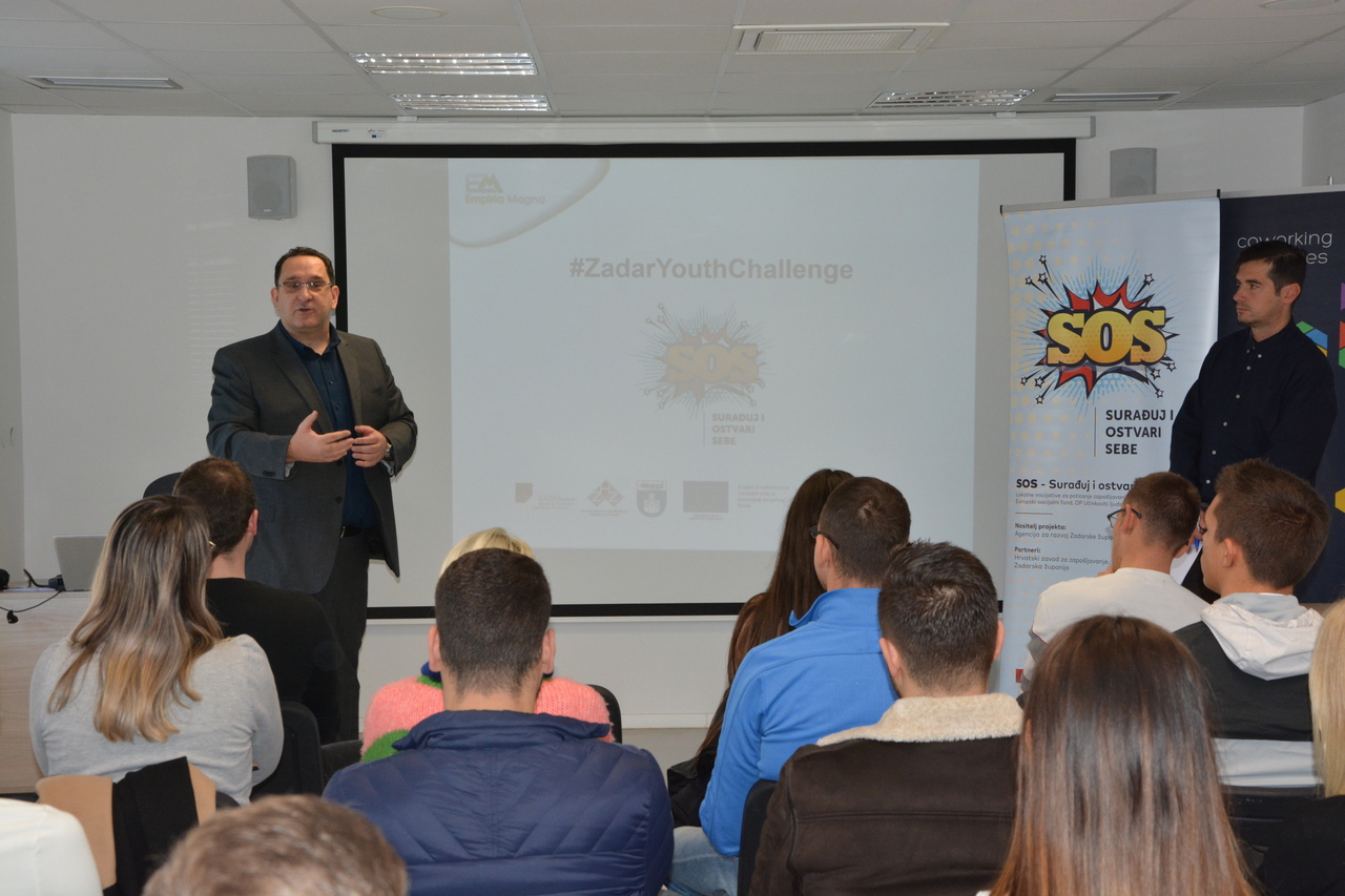 Naime, u sklopu projekta „SOS – Surađuj i ostvari sebe“ u prostorijama COIN-a organiziran je Zadar Youth Challenge, dvodnevno događanje usmjereno nezaposlenim mladima u dobi od 18 do 30 godina. Uz mentore i predavače sudionici su intenzivno radili na razvijanju poduzetničke ideje kroz timski rad i kombiniranje tri ključne riječi. Sudionike su mogli pratiti i predavanja na kojima su im bila prezentirana osnovna znanja potrebna za oblikovanje i razvoj poslovne ideje te kako istu prezentirati i prilagoditi tržištu.
