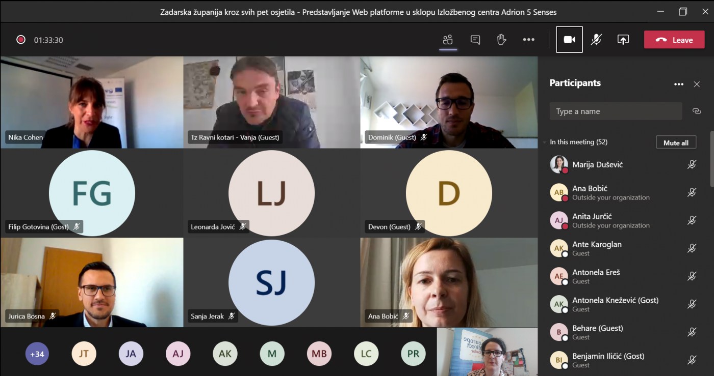 Kroz temu „Zadarska županija kroz svih pet osjetila“ održano je 6. studenog 2020. godine predstavljanje Web platforme u sklopu Izložbenog centra Adrion 5 Senses.