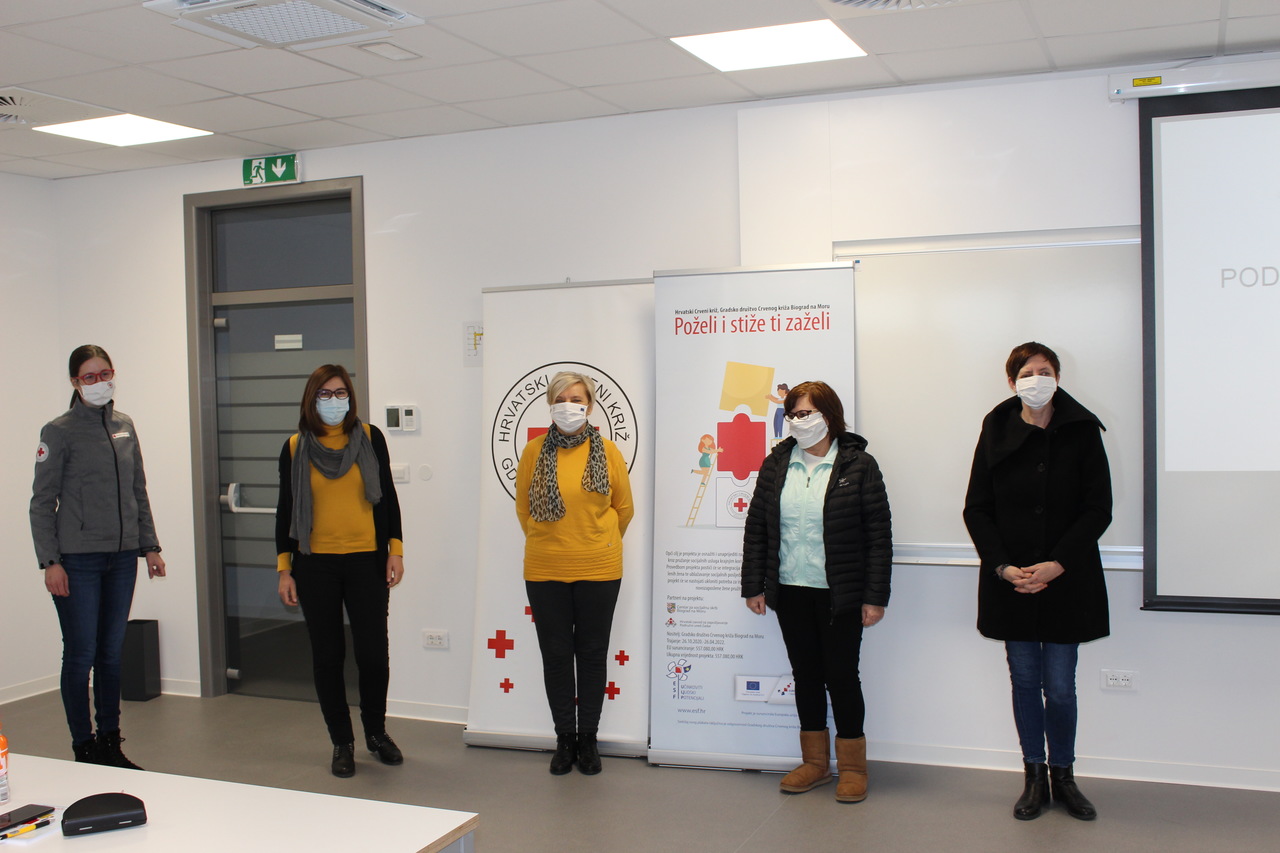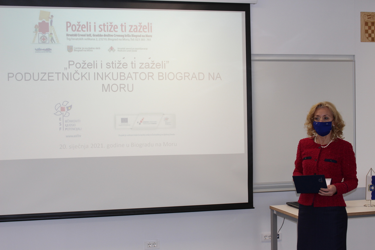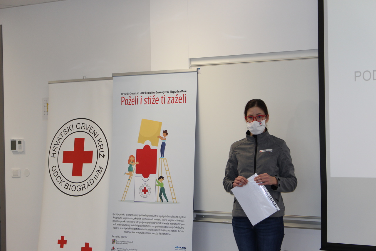 Projekt je predstavila ravnateljica Gradskog društva Crvenog križa Biograd na Moru, Franka Troskot: „Opći cilj projekta je osnažiti i unaprijediti radni potencijal teže zapošljivih žena u lokalnoj zajednici kroz pružanje socijalnih usluga krajnjim korisnicima radi povećanja njihove socijalne uključenosti. Provedbom projekta postići će se integracija nezaposlenih žena na tržište rada, motivacija nezaposlenih žena te ublažavanje socijalnih posljedica njihove nezaposlenosti i obrazovanja. Također, kroz projekt će se nastojati ukloniti potreba za institucionalizacijom 38 starijih osoba na način da će im šest novozaposlenih žena pružiti potrebnu pomoć u vlastitom domu. Uz to, ovih šest žena će se educirati kako bi stekle dodatna znanja i vještine.“
