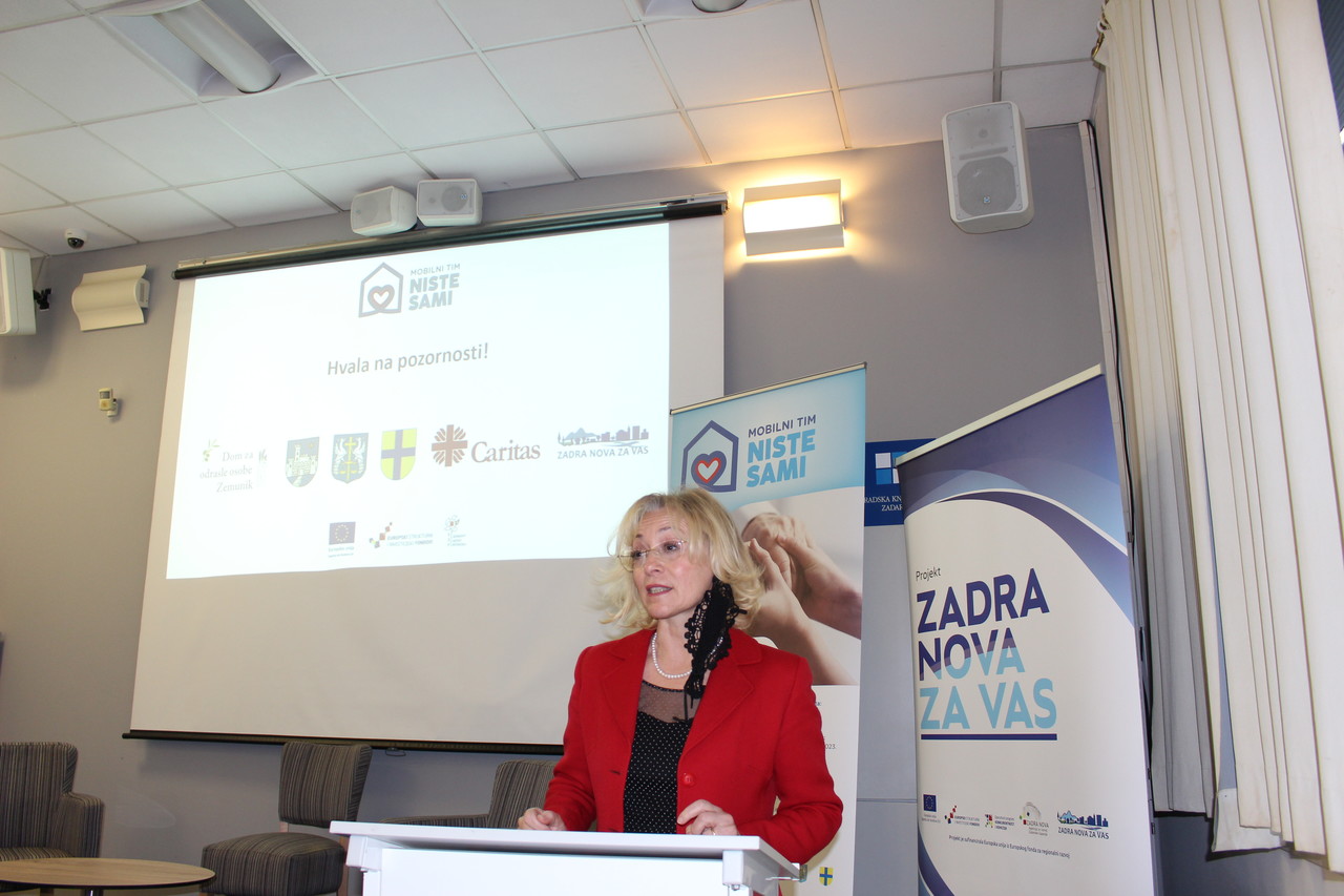 „Dom za odrasle osobe Zemunik, zajedno s partnerima, prepoznao je potrebe stanovništva lokalne zajednice te je osmislio projekt koji je usmjeren ka zadovoljavanju potreba jedne od najranjivijih skupina – osoba sa invaliditetom. U Zadarskoj županiji živi 19.836 osoba s invaliditetom što čini 11,8% ukupnog stanovništva Zadarske županije. Veći dio osoba s invaliditetom nalazi se u naseljima koja su disperzirana u prostoru te imaju mali broj stanovnika. Istima su, zbog prethodno navedenog, slabo dostupne pojedine socijalne usluge. Stoga, glavni ciljevi projekta je razvijanje izvaninstitucijskih socijalnih usluga i socijalne infrastrukture, poboljšanje standarda i teritorijalna uravnoteženost sustava socijalne skrbi na području Zadarske županije, poticanje deinstitucionalizacije i prevencija buduće institucionalizacije osoba s invaliditetom, širenje mreže socijalnih usluga i podrške osobama s invaliditetom i njihovim obiteljima te podizanje stupnja samostalnosti osoba sa invaliditetom kao i jačanje socijalne uključenosti osoba u nepovoljnom položaju.“ – kazala je ravnateljica Petrušić.