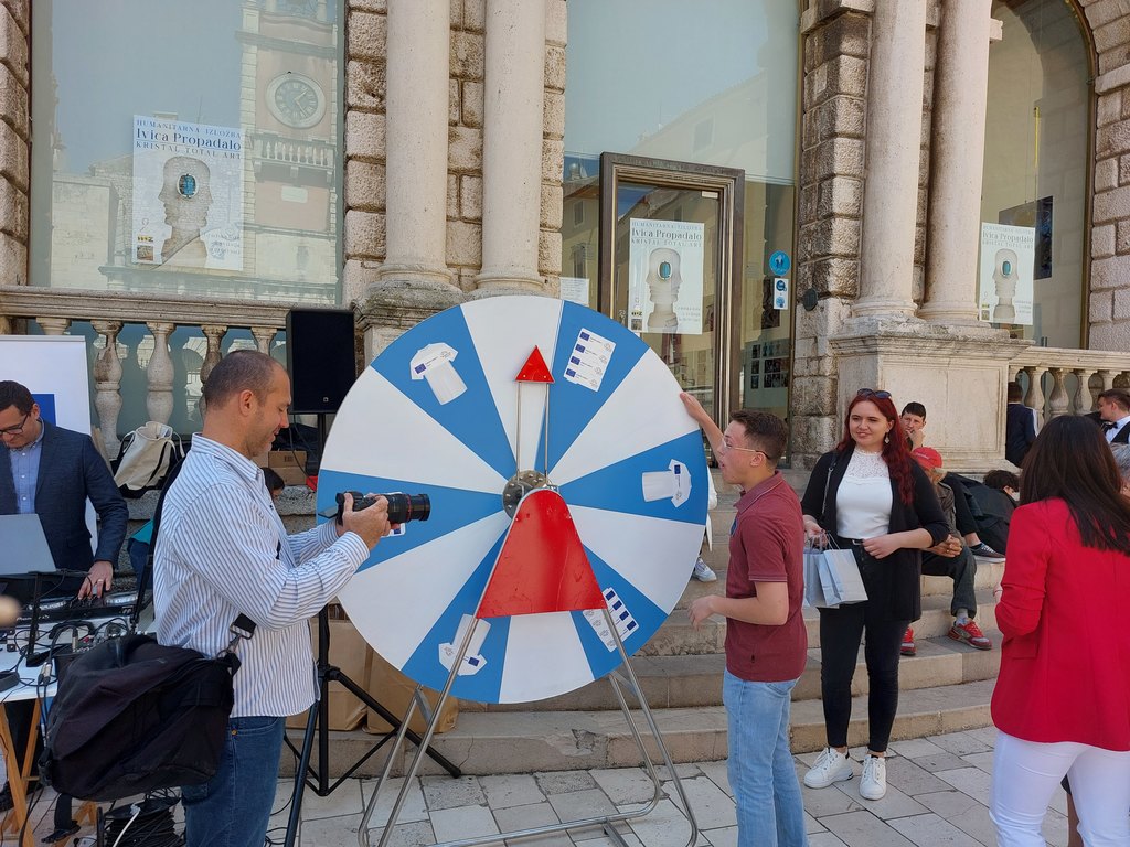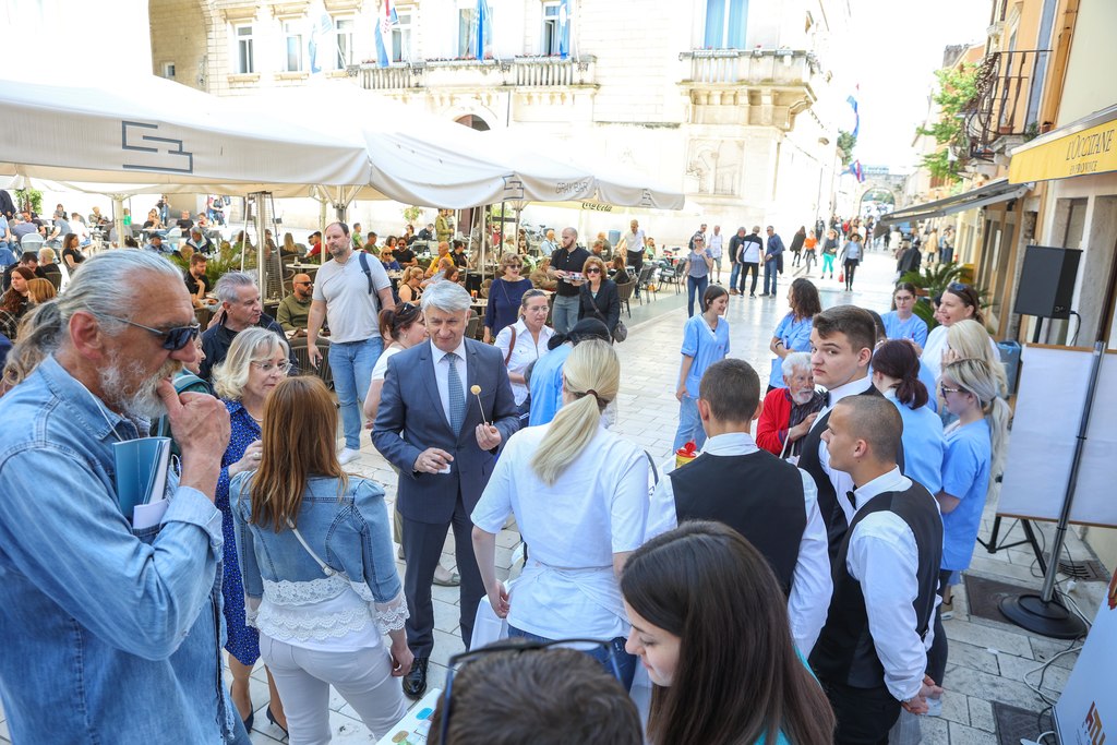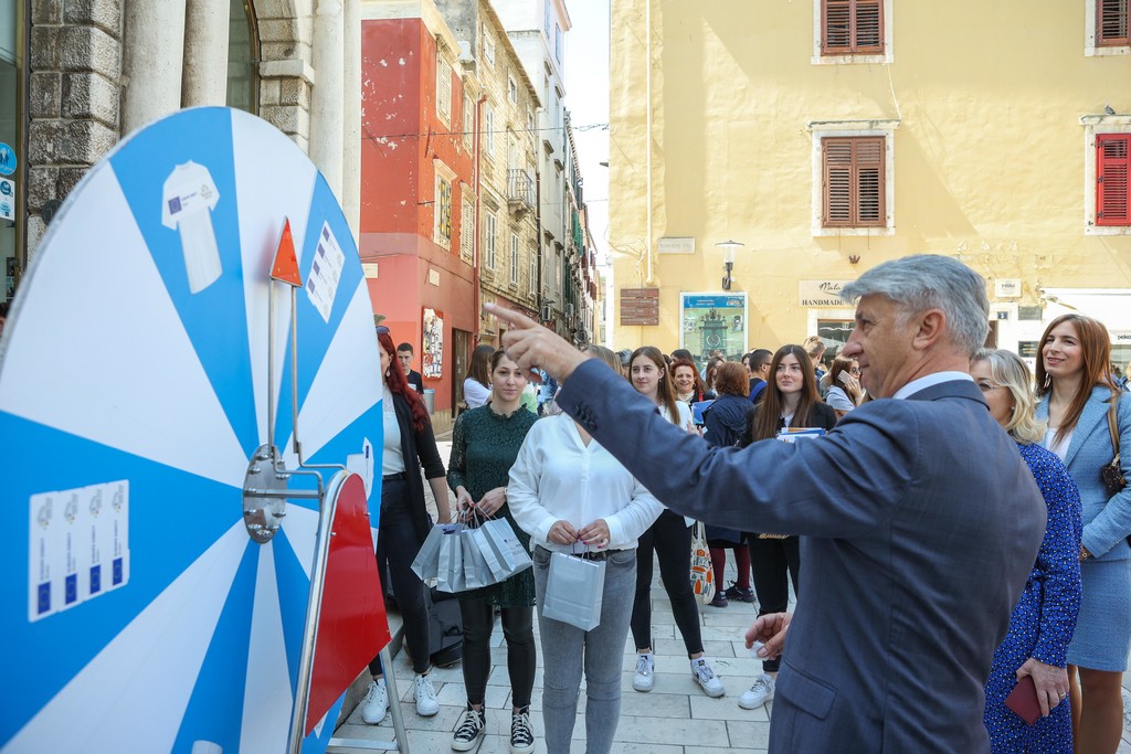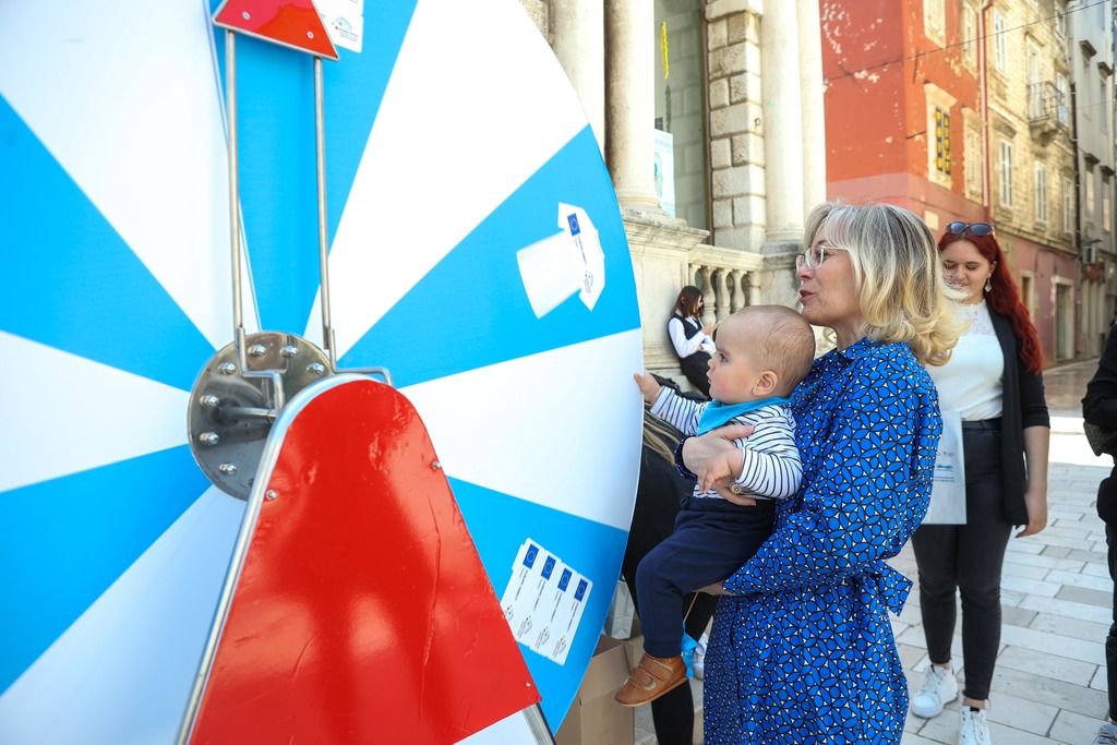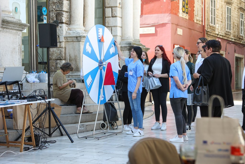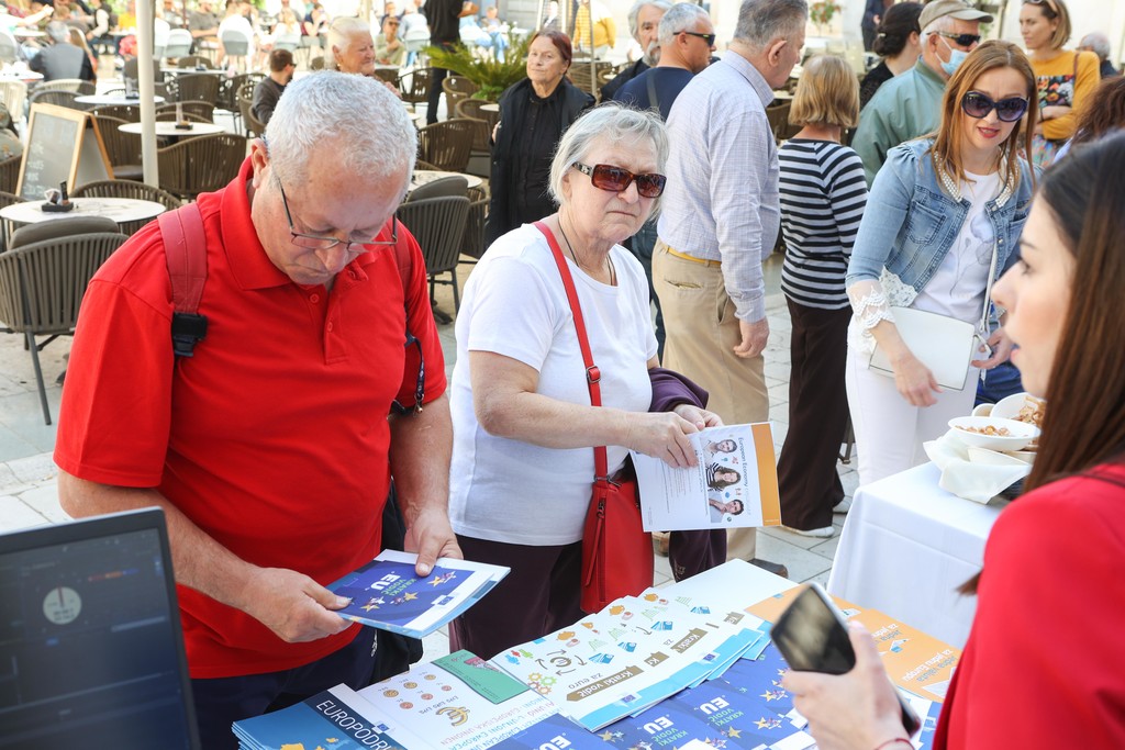 Učenici iz škola ambasadora Europskog parlamenta i tim centra EUROPE DIRECT Zadar građanima su dijelili EU publikacije te prigodne poklone i iznenađenja, a posjetitelji su se mogli okušati i u „kolu sreće“. Kod učenika Medicinske škole Ante Kuzmanića Zadar posjetitelji su tako mogli izmjeriti tlak i glukozu u krvi, ali i osladiti se domaćim fritulama i kroštulama koje su pripremili učenici Hotelijersko turističke i ugostiteljske škole Zadar.