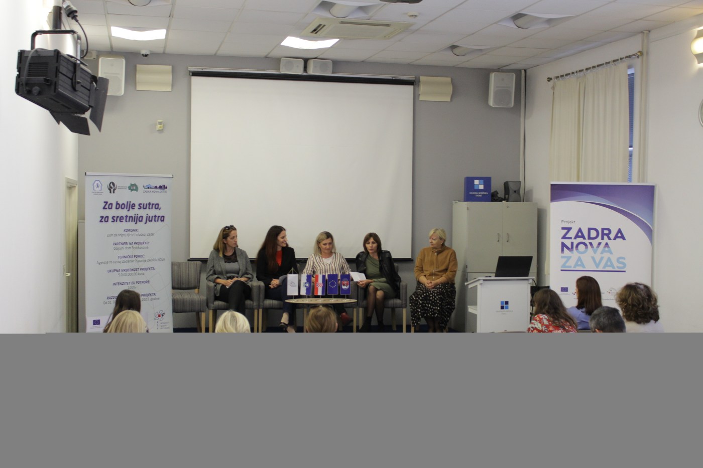 Okupljene je pozdravila zamjenica ravnateljice Centra za pružanje usluga u zajednici Zadar, Ljiljana Šarić koja je ujedno i voditeljica projekta. Doc.dr.sc. Ana Marija Iveljić s Odjela za pedagogiju Sveučilišta u Zadru prezentirala je važnost deinstitucionalizacije socijalnih usluga, kao i prava pripadnika ciljanih skupina koje čine djeca i mladi bez roditelja ili bez odgovarajuće roditeljske skrbi kao i djeca i mladi s problemima u ponašanju.