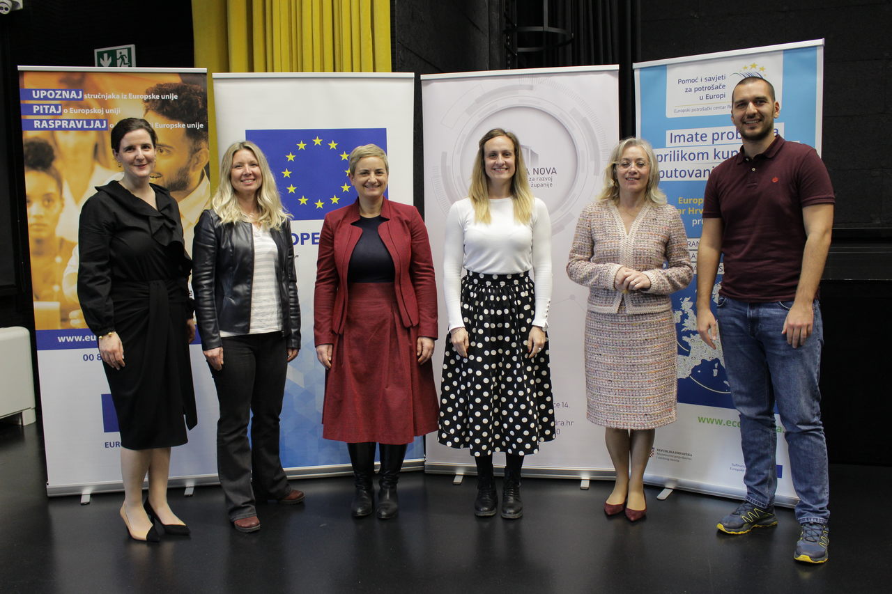 O procesu uvođenja eura kao službene valute u Hrvatskoj iz perspektive potrošača govorila je voditeljica Službe za provedbu politike zaštite prava potrošača, Mirela Skočić. Upoznala je okupljene s obvezama oko dvojnog iskazivanja cijena, mogućnostima zamjene eura, dostupnim novčanicama i kovanicama.