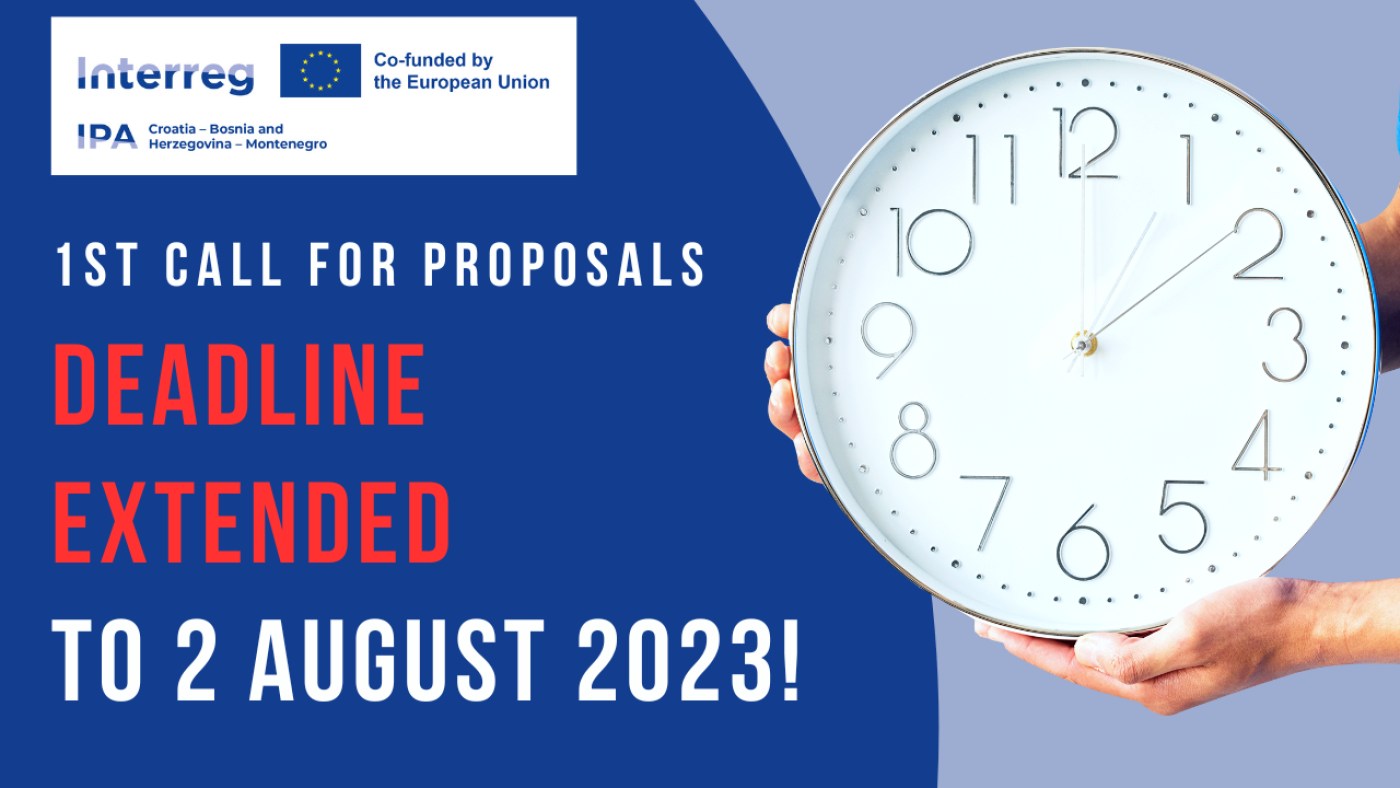 Upravljačko tijelo i Zajedničko tajništvo obavještavaju sve potencijalne prijavitelje da je na 1. poziv za dostavu projektnih prijedloga produljen rok za prijave!