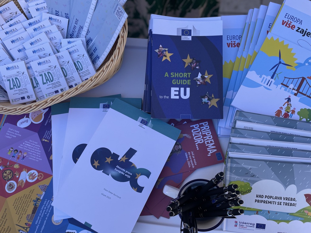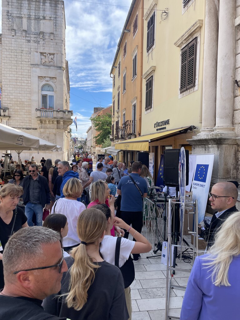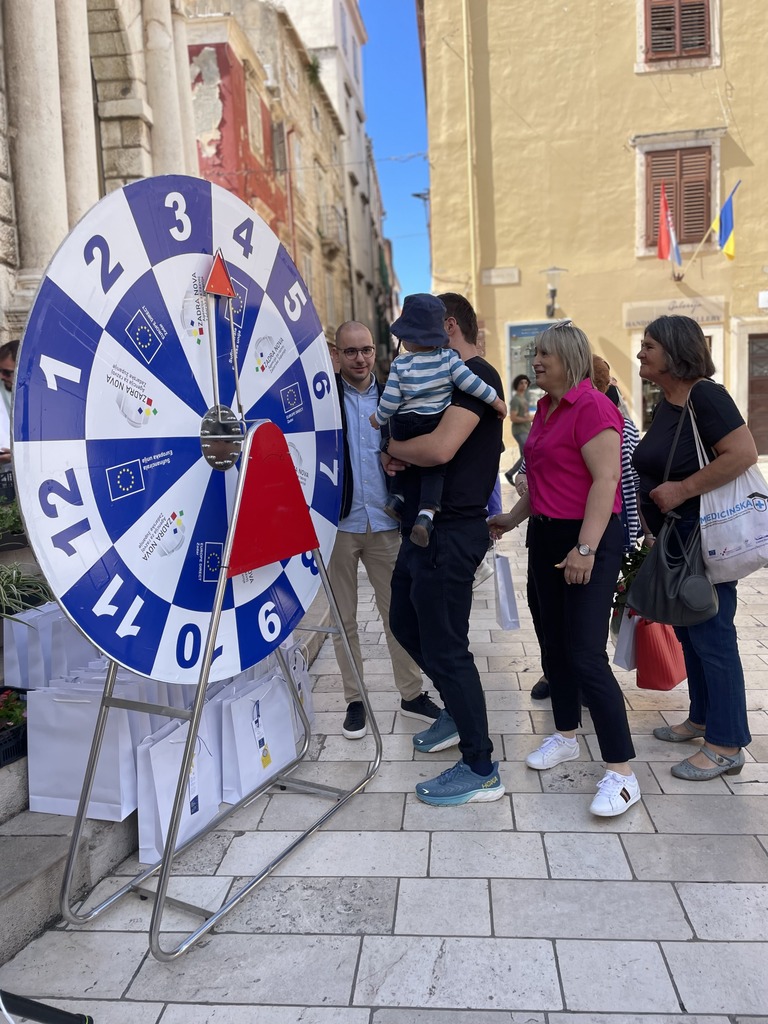 Učenici iz škola ambasadora Europskog parlamenta i tim centra EUROPE DIRECT Zadar građanima su dijelili EU publikacije te prigodne poklone i iznenađenja, a posjetitelji su se mogli okušati i u „kolu sreće“ u kojem nitko nije otišao „praznih ruku“. U skladu s proljetnom atmosferom okupljeni su imali priliku osvojiti i sadnice cvijeća te se osladiti domaćim jagodama iz zadarskog zaleđa.